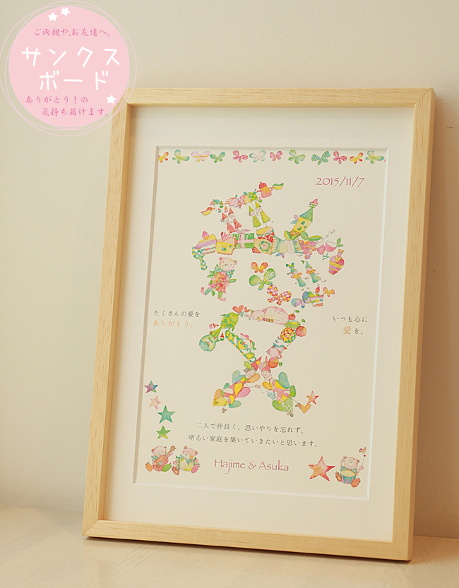 ・お名前、日付、メインメッセージ、感謝を伝えるメッセージをお入れいたします。