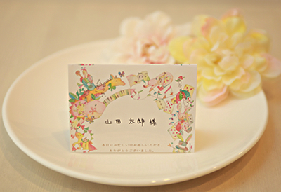 ウェルカムボードとおそろいの席札、サンキューカードをおつくりいたします。