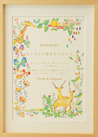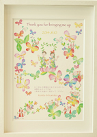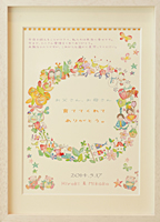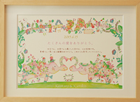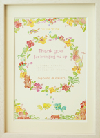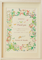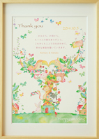わくわくしながら荷解きをし、目に入った「ウエディングボード」は想像通りの雰囲気に仕上げてぐださっていてとても満足しております。 earth weddingさまがおりなす色彩はとても温かみと優しさが感じられ、私はずーっと眺めていても飽きない感じがします。 同じ絵柄の席札をテーブルにおきますと座られたとき何気なくにっこり皆様が嬉しく思ってくださることと楽しみでもあります。 Thank youカードまで付けてくださり、これから席札に名前を書き加え仕上げるのも楽しみです。本当に有難うございました。 |