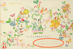2、感謝を伝えるメッセージもお入れします。 ![]() |